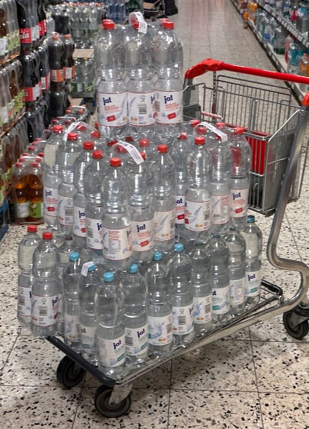 Soviel Blut fließt jede Woche von meinem Arm zur Dialyse-Maschine, wird dort gereinigt und fließt zu mir zurück. Jeden Tag so ein Wagen voll.