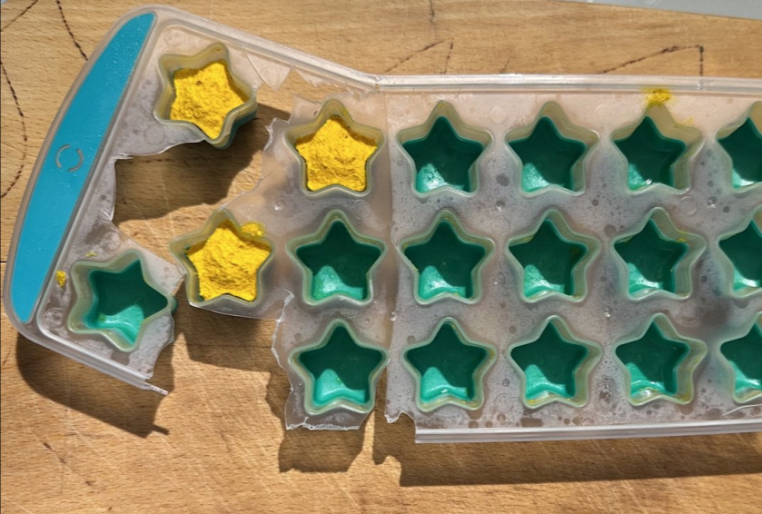 Noch ein Hinweis zu meinem Immun-Booster: Das Zeug ist zwar gesund und empfehlenswert, aber doch nicht ganz ungefährlich. Ich hab unten ein Bild davon, dass man, wenn man zu blöd ist, die Eiswürfel vorsichtig genug aus dem Behältnis zu drücken, doch immensen Schaden anrichten kann.